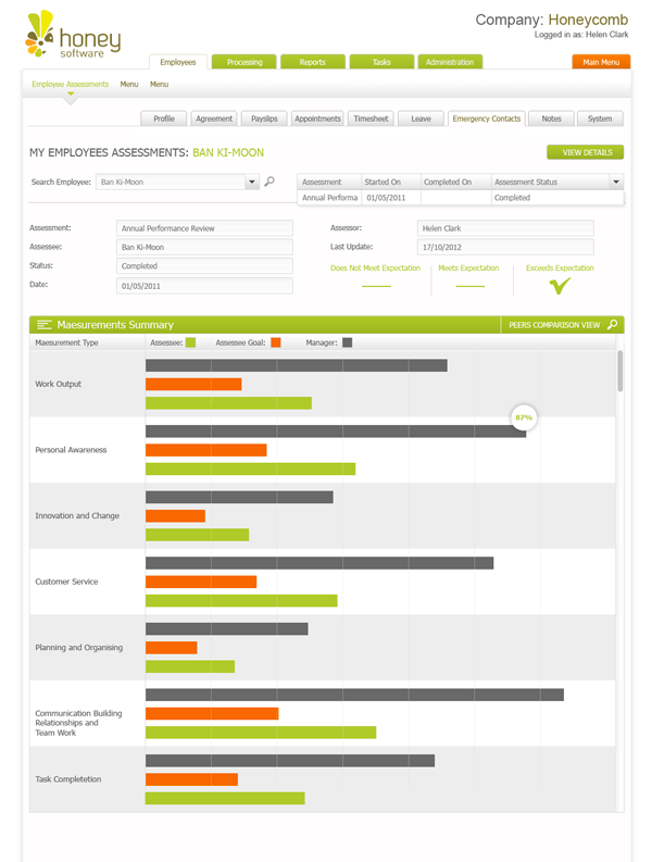 Greater buy in from Managers and employees Honey Software removes the 'fear factor' of performance reviews with simple user interfaces, online access, consistent processes supported with simple 'how to guides'.